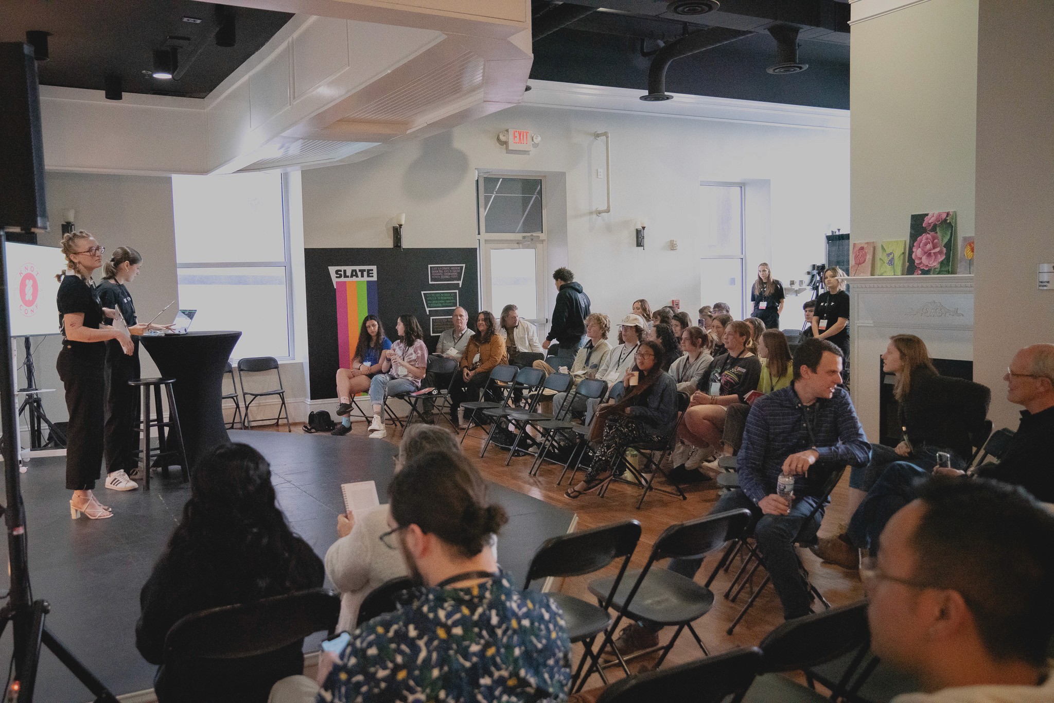 The Knot Conference, held on April 27, 2024 from 8 AM to 4:30 PM at Chiquola Studios in Downtown Anderson, SC, was an innovative design event hosted by the South Carolina School of the Arts at Anderson University. Designed by the Class of 2025 graphic design cohort, the conference featured six speakers, three workshops, and six panelists, all aimed at empowering attendees to create change by revealing the connection between design and community. This event provided a day of inspiration, collaboration, and hands-on learning in a charming vintage hotel setting.